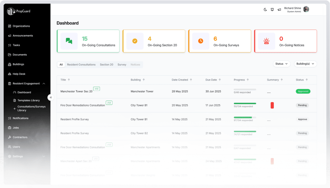 PropGuard isn’t just another property management tool, it’s a revolutionary platform that transforms how you manage building safety, compliance, and resident relationships. Built specifically for the demands of modern property management, PropGuard consolidates every aspect of building safety into one intelligent, user-friendly system.